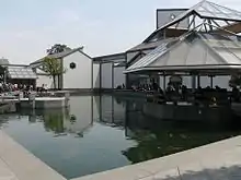 The museum is placed between courtyards to harmonize the building with its surrounding environment. Pei designed a central courtyard and several small inner courtyards to complement the structure of the museum. The main courtyard is a creative landscape garden surrounded on the east, west and south sides by the museum structure. The north side of the courtyard is next to the Humble Administrator's Garden,[5] the largest of Suzhou's classical gardens.[7] The main courtyard was described as the most painstakingly designed of the museum's courtyards, and contains pebbled ponds, straight and winding bridges, octagonal pavilions, and a bamboo forest.[5][8][9]