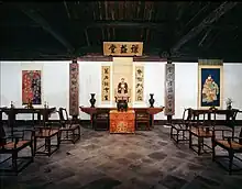 The Wu Family Reception Hall, early 17th century. This three-bay reception hall was originally part of a traditional Suzhou-style courtyard house located in the east Dongting district near the present town of Dongshan. Built in the early 1700s by the Wu family, it served as the main ceremonial hall (zhongtang) of a traditional upper-class home. It is now displayed at the Minneapolis Institute of Art, USA.