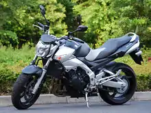 The Suzuki GSR600 is a 599 cc (36.6 cu in) 16 valve inline-four engine motorcycle made by Suzuki since in 2006, introduced as a streetfighter-styled middleweight street-bike using the 2004 GSXR-600 engine. The engine is re-tuned for more usable midrange power as well as higher torque. The rear shock's rebound and compression is adjustable.