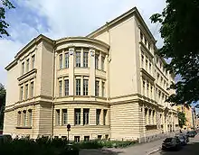 The school was located on Aleksanterinkatu 6 for the first few years and then on Kasarmikatu 48 between 1867 and 1878. Norsen was then temporarily located in a rented facility at Ratakatu 2,[1] while a new school building designed by architect Axel Hampus Dahlström was being built. In 1880 the school moved to the new building on Unioninkatu 2, where it remained.[2]
