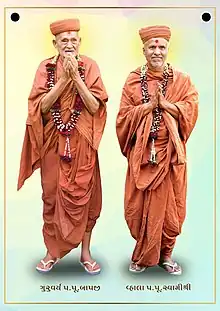 Swaminarayan Mandir Vasna Sanstha (SMVS)[1] is a Hindu denomination within the Swaminarayan Sampradaya. It was founded in 1987 by Devnandandasji Swami, usually addressed as HDH Bapji[2] by his devotees and followers,[3][4] It propagates the preaching and teaching of Swaminarayan[5] as explained by Jivanpran Abajibapashri. Multifaceted activities in areas like social, cultural, educational, religious fields are carried out by SMVS under the directions and guidance of Bapji and his second in-command and current Guru Satyasankalpdasji Swami, who is usually addressed as HDH Swamishri.