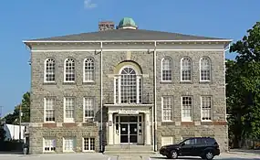 Swedesboro, initially named Sveaborg by the Swedish settlers, along with Bridgeport (Nya Stockholm) and Finns Point (Varkens Kill), was one of only three settlements established in New Jersey as a part of the New Sweden colony. The oldest extant log cabin in the U.S., C. A. Nothnagle Log House (c.1640) was built by Antti Niilonpoika (Anthony Neilson/Nelson) in Swedesboro.[28] It is listed on the National Register of Historic Places, as is Trinity Episcopal "Old Swedes" Church, which was established as a Swedish Lutheran Church in 1703; the present building dates to 1784.[29]