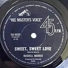"Sweet, Sweet Love" is a song written and recorded by Australian singer Russell Morris and produced by Howard Gable. It was released as the lead single from his debut album Bloodstone. It peaked at number 7 on the Australian Go-Set chart in July 1971; this becoming Morris' fourth top ten single.[1]