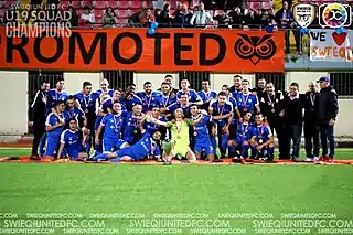 Swieqi United FC has an Under 19 (Minors) Squad which participates in the MFA Youth League. The Under 19s finished 4th in their first ever season in Section E and won the same competition the following year. They also finished 3rd in their maiden season in Section D. During the 2016–17 Season, the U19s achieved promotion to Section C winning the league in a convincing manner. Throughout the 2017–18 season, the club managed back-to-back promotions, this time beating Msida St. Joseph 6–1 on the final day of the season to ensure a historic promotion to Section B of the National Youth Competition. The Under 19s also managed to reach the Quarter-finals of the National Youth Cup for two successive seasons [throughout 2016/17 and 2017/18].