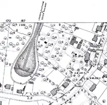 A small part of the Upper Sydenham 1894 Ordnance Survey map, showing buildings and garden paths on the southeast edge of the wood