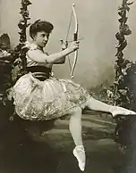 The Mariinsky Theatre's production was originally planned for the 1900–1901 season in a staging supervised by Sergei Diaghilev, with décors and costumes designed by Alexandre Benois and choreography by the brothers Sergei and Nikolai Legat.[5] But differences between Diaghilev and the director of the Imperial Theatres, Serge Wolkonsky, led to the project's cancellation as well as the end of Diaghilev's association with the Imperial Theatres, an event that led Diaghilev to eventually form the original Ballets Russes in 1909.[5] Nevertheless, the ballet was rescheduled for the 1901–1902 season in a version mounted by the Imperial Theatre's second maître de ballet Lev Ivanov, whose death in December 1901 caused the director to hand the project over to the noted premier danseur Pavel Gerdt.[5] Ivanov changed the ballet's title to Sylvia.[5] The cast included the great prima ballerina Olga Preobrajenska in the title role and the danseur Sergei Legat as the shepherd Aminta. Also included among the ballet's secondary characters was a young Agrippina Vaganova as a nymph of the Goddess Diana, and Pavel Gerdt in the rôle of Orion.[6]