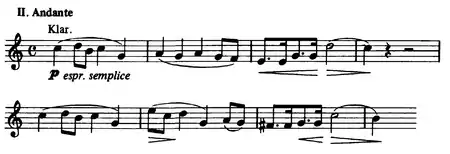 time. The main melody is played by a solo clarinet, which then get passed around to the entire orchestra.