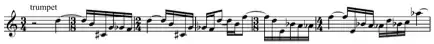 In between statements of the theme are episodes which often include long solo passages for various instruments. The episodes are unified primarily by their melodic material and character, and themes frequently emphasize both the chromatic scale and the tritone. The trumpet and English horn are both notable examples of episodic melodies.