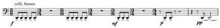 The bass ostinato again asserts itself early on, firmly linking the finale with the previous movements. The timpani carry the melody with celli and double basses in accompaniment.