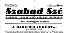 Szabad szó ('Free Word') was a Hungarian newspaper that served as the central organ of the National Peasants Party.