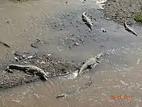The Tárcoles River, also called the Grande de Tárcoles River or the Río Grande de Tarcoles, in Costa Rica originates on the southern slopes of the Cordillera Central volcanic range and flows in a south-westerly direction to the Gulf of Nicoya.[1] The river is 111 kilometres (69 mi) long and its watershed covers an area of 2,121 square kilometres (819 sq mi),[1] which encompasses around 50% of the country's population.