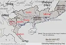 Tây Vu Vương was the leader of the Tây Vu autonomous area of which the centre was Cổ Loa. Some historians consider that he was probably a descendant of An Dương Vương.[3] Historian Trần Quốc Vượng saw the king as having established a fief or government at Cổ Loa.[4][5] At the end of Han conquest of Nanyue, he was killed by his assistant Huang Tong (黄同; Hoàng Đồng).[6][7]