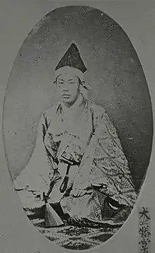 Tōdō Takakiyo was born in 1837 as the eldest son of the previous daimyō of Tsu Domain, Tōdō Takayuki; his mother was from the Hashimoto clan. In 1849, he was awarded the courtesy titles of Daigaku-no-kami and jijū and Lower Fourth court rank. In 1863, he was sent to Kyoto in place of his father to attend to Emperor Kōmei as the nominal head of the domain’s forces sent to help suppress pro-sonnō jōi rebels during the Tenchūgumi Incident. He was awarded with the ceremonial courtesy title of Captain of the Left Imperial Guards (左近衛権少将) by the grateful emperor the following year.