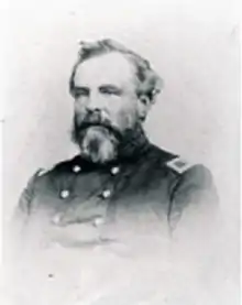 Stockton raised the new 16th Michigan Infantry Regiment on September 8, 1861, at Flint.[2][3] The regiment would first see action in the Siege of Yorktown and was soon assigned to the V Corps, as part of the 3rd Brigade of the 1st Division. On June that year, Stockton was captured along with most of his regiment at the Battle of Gaines' Mill. He would be held as a prisoner of war at Libby Prison until he was released in a prisoner exchange in August.[1] By the time of the Battle of Antietam he was in command of the brigade.[4][5] Stockton would continue to lead it during the Battle of Fredericksburg and the Battle of Chancellorsville before resigning in May 1863 due to his injuries and ill health.[1]