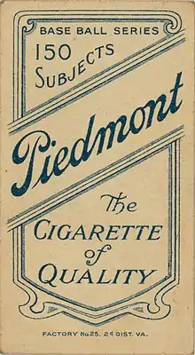 - ↑ not highly regarded as a T206 back as it is only found with a single image front.[18]