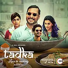 Tadka is an Indian Hindi-language romantic comedy-drama film directed by actor Prakash Raj, starring Nana Patekar, Ali Fazal,[1] Shriya Saran and Tapsee Pannu.[2] The story of the film is based in Goa and filming began in May 2016. It is a remake of the 2011 Malayalam film Salt N' Pepper.[1] The film was released on ZEE5 on 4 November 2022.[3]