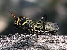 Taeniopoda is a genus of horse lubbers, fairly large grasshoppers in the family Romaleidae that are native to southwestern United States, Mexico and Central America. There are about 12 described species in Taeniopoda.[1][2][3][4] Taeniopoda is very closely related to Romalea (members of the two genera can even produce fertile hybrids in captivity[5]), leading some recent authorities to consider the former a junior synonym the latter.[4][6]