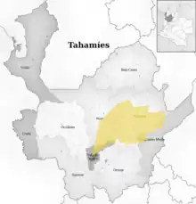The Tahamí were a Colombian indigenous people who inhabited the Antioquia Department region west of the Magdalena River at the time of the Spanish conquest of the Chibchan nations; the Nutabe were their northern neighbor and Muisca their southeastern. They were defined as comparably advanced to the Muisca in Century Dictionary and did not have hereditary rulers. It was customary the dead be buried with gold.[1]