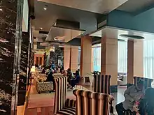 Restaurants include Club House, the all-day dining restaurant that serves European cuisine; Beyond Indus, serving cuisine from Punjab, Rawalpindi and Sindh, including wines; Kefi, serving Mediterranean cuisine; Blend bar; Brew coffee and tea shop; and Deli, serving delicacies ranging from sandwiches to exotic chocolates. The rooftop facilities include a lap pool, a gymnasium and a yoga room.[5]