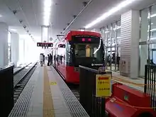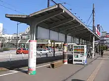 The Takaoka Station (高岡駅, Takaoka-eki) is a city tram station on the Takaoka Kidō Line located in Takaoka, Toyama Prefecture, Japan. This tram stop was created in order to service the shopping area between Katahara-machi and Otaya Avenue, and to service JR West's Takaoka Station.