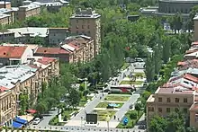 The Cafesjian Sculpture Garden of the Cafesjian Museum of Art is located along the street. The street ends with the staircase of the cascade complex.