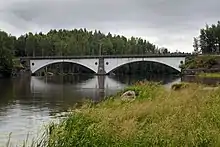 The Tampere-Pori line follows river Kokemäenjoki and its waterways throughout its path. The crossing of the river takes place at Riste in Kokemäki via four bridges. The altitude of the line decreases by more than 100 metres (330 ft) from Tampere to Pori, although there are no particularly steep inclines except between Nokia and Siuro. The only tunnel on the line was on the former Linnavuori siding in Siuro, but there are several steep cliffs. The tightest curves on the line were straightened in Nokia, Vammala and Riste in the 1960s and 1980s, with the line being moved to a completely different location in some places. Even then, the line follows the banks of the Kulovesi and Rautavesi lakes in many locations.[3]
