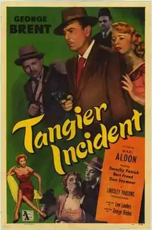 Tangier Incident is a 1953 American thriller film directed by Lew Landers and starring George Brent, Mari Aldon and Dorothy Patrick. It was one of several Hollywood films set in Tangier during the International Zone period.[1]