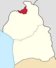 In 1885, after the Chilean victory in the War of the Pacific, Chile integrated Tarata into the Tacna Department of the newly formed Tacna Province. The Department was officially created under president Ramón Barros' administration on December 2, 1911, under law № 2,575, published in the Chilean Diario Oficial newspaper.[1][2] The Department's territory was composed of the 8th and 9th subdelegaciones of Tacna Department. The comune of Tarata was chosen as its capital, and some parts of its administration, such as its judicial administration, were shared with nearby Arica Department.[2] Ticalaco River served as its northern boundary.[3]