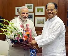 Many political figures and leaders including[45] Prime Minister Narendra Modi, President Ram Nath Kovind, Vice President Venkaiah Naidu, Rahul Gandhi, Congress President Sonia Gandhi, former Prime Minister Manmohan Singh, Congress leader in Rajya Sabha Mallikarjun Kharge, Commerce minister Piyush Goyal,[46] Home Minister Amit Shah, Finance Minister Nirmala Sitharaman and Defence Minister Rajanath Singh all expressed condolences at the demise of Gogoi.[47] Several former and incumbent chief ministers also paid tribute including Zoramthanga,[48] N. Biren Singh, Mamata Banerjee, B. S. Yediyurappa, Amarinder Singh, Arvind Kejriwal, Ashok Gehlot,[49] M. K. Stalin,[50] Akhilesh Yadav,[51] Sharad Pawar,[52] Shivraj Singh Chouhan,[53]Chief Minister of Assam Sarbananda Sonowal and Bhumidhar Barman. Many other politicians including MPs, state legislators and state ministers also offered their tributes.[54] In a statement, Chief Minister Sarbananda Sonowal said:[55]