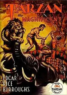 Tarzan the Magnificent is a book by American writer Edgar Rice Burroughs, the twenty-first in his series of twenty-four books about the title character Tarzan. It was originally published as two separate stories serialized in different pulp magazines; "Tarzan and the Magic Men" in Argosy from September to October, 1936, and "Tarzan and the Elephant Men" in Blue Book from November 1937 to January 1938. The two stories were combined under the title Tarzan the Magnificent in the first book edition, published in 1939 by Edgar Rice Burroughs, Inc. In order of writing, the book follows Tarzan's Quest and precedes Tarzan and the Forbidden City. In order of book publication it falls between the latter and Tarzan and the Foreign Legion. The novel's plot bears no relation to that of the 1960 film of the same title.