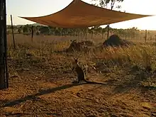 Between 1979 and the late 1980s, population numbers were estimated to be between 1000 and 1400 individuals.[14][20] Despite concerted efforts and various management approaches population numbers have continued to decline, a situation which is often attributed to the sustained drought which occurred in the early 1990s.[8] Droughts are known to directly impact the wallaby through the reduced availability of food resources, while also indirectly increasing predation pressure as the level of protective habitat cover is decreased and overall prey numbers continue to decline.[8] Known predators of the wallaby include; feral cats and dogs, dingoes (Canis lupus) wedge-tailed eagles (Aquila audax) and large pythons.[11][21] To reduce predation, dingo and wild dog baiting is regularly conducted, and the Sporting Shooters Association of Australia also carries out hunting expeditions, targeting the feral species and dingoes in the park and surrounding areas.[1][20]