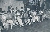 A taxi dance hall is a type of dance hall where dancers, usually young women, called taxi dancers are paid to dance with usually male patrons. The owners of a taxi dance hall provide music and a dance floor for their patrons and taxi dancers.[1] In the United States during the 1920s and 1930s, when taxi dancing was at its peak, patrons of taxi dance halls would typically buy dance tickets for ten cents each.[2][3] When they presented a ticket to a taxi dancer, she would dance with them for the length of a single song.[4] Taxi dancers earned a commission on every dance ticket that they collected.[5] The ticket-a-dance system was the centerpiece of the taxi dance halls. Taxi dance halls are vividly represented on the ouverture of Henry Miller novel Sexus, where the narrator falls in love with a taxi dancer after meeting her on a Thursday night, circa 1928.