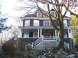 The Taylor-Dallin House is a historic house in Arlington, Massachusetts. The house is notable as being the home of sculptor Cyrus E. Dallin (1861–1944) from 1899 until his death. It is a Colonial Revival/Shingle style 2+1⁄2-story wood-frame structure, with a hip roof studded with dormers, and a front porch supported by Tuscan columns. The house was built c. 1898 by Jack Taylor and sold to Dallin in 1899. Dallin's studio, no longer extant, stood in the rear of the property. Dallin was one of Arlington's most well-known citizens of the early 20th century, and his sculptures are found in several public settings around the town.[2]