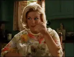![]() January Jones as Betty Francis eating a sundae in the final scene of 'Tea Leaves." The writers wrote around Jones's real-life pregnancy by including a weight gain for the character. | |