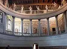 - ↑ Sir Nikolaus Pevsner writes that permanent theatres were first constructed in Ferrara (1531), Rome (1545), Mantua (1549), Bologna (1550), Siena (1561), Venice (1565), and Vicenza (the Teatro Olimpico) in 1580. Of these, only the Teatro Olimpico survives, along with the Teatro All'antica and the Teatro Farnese. See Pevsner’s A History of Building Types. London: Thames and Hudson, 1976, p. 66