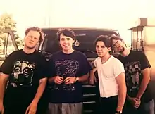 Techno-Squid Eats Parliament formed in 1992 when childhood friends, Aaron Sarlo and Clay Bell began searching for a bassist and drummer to fill out their fledgling sound. Sarlo and Bell enlisted the help of Mark Pearrow on bass (Pearrow coined the band’s name[1]) and Shayne Gray on drums. The band’s second show was as a contestant in the Spectrum Weekly Musicians’ Showcase in Little Rock. The judges for the competition were record producer Jim Dickinson, Jody Stephens of Big Star (who would go on to be the band’s A&R director), John Fry, and Rick Clark, a writer for Billboard Magazine.[1] Techno-Squid Eats Parliament won their night, and shortly thereafter, signed to Ardent Records in Memphis.