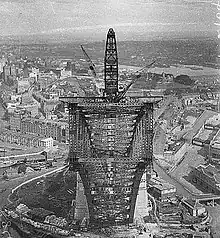 “The first photograph taken from the top of the jib of the creeper crane on the north side of the North Shore bridge, showing Dawes Point and Darling Harbour in the distance”[3][5]
