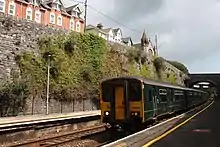 Teignmouth railway station is on the Exeter to Plymouth line and serves the seaside town of Teignmouth in Devon, England. It is located 208 miles 70 chains (336 km) from London Paddington, via Box.[1] It is operated by Great Western Railway and is the third-busiest station on the Riviera Line after Exeter St Davids and Newton Abbot.