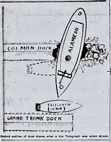 Diagram of collision at Colman Dock which sunk Telegraph.