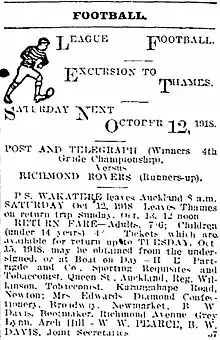 - ↑ "Otahuhu v. Post and Telegraph". Auckland Star, Volume XLVII, Issue 169. 17 July 1916. p. 7. Retrieved 29 August 2023.