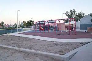 Telephone Pioneers of America Park, also known as Telephone Pioneers Park or Telephone Park, is an adaptive recreation park serving the needs of physically disabled persons in Phoenix, Arizona. The park opened in 1988 from private donations collected by the Telephone Pioneers of America and is the first barrier-free park in the United States. Managed by the Phoenix Parks and Recreation Department, the park features two beep baseball fields, a therapeutic pool, a wheelchair-accessible playground, an 18-station exercise course, racquetball, volleyball, tennis, basketball and shuffleboard. Picnic facilities with open shelters known as ramadas are available.[1]