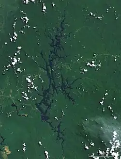 Temenggor Lake (Malay: Tasik Temenggor) is a lake in Hulu Perak District, Perak, Malaysia. It is the second largest lake in Peninsular Malaysia after Kenyir Lake in Hulu Terengganu District, Terengganu. This man-made lake is located south of 1,533 m high Ulu Titi Basah peak.[1] It was created after the construction of Temenggor Dam to generate electric power. The lake is located about 45 km from the Hulu Perak district capital, Gerik. There is a man-made island, Banding Island (Pulau Banding)[2] and Lake Temenggor Bridge on the East-West Highway which crosses the lake.