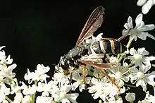 Temnostoma bombylans is a species of hoverfly.[6] Larva of this species feed in decaying wood of deciduous trees.[7]