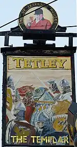 The pub is uniquely named after the Knights Templar,[4] a historic religious military order. A battle with medieval soldiers is depicted on the hanging pub sign.[3]