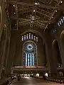 In 1929, the congregation moved to its present location at 65th Street and Fifth Avenue, where the Temple building was constructed to designs of Robert D. Kohn[lower-alpha 1] on the former site of the Mrs. William B. Astor House. The vast load-bearing masonry walls support the steel beams that carry its roof. The hall seats 2,500, larger than St Patrick's Cathedral.[3]