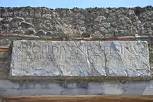 The Temple of Isis is a Roman temple dedicated to the Egyptian goddess Isis. This small and almost intact temple was one of the first discoveries during the excavation of Pompeii in 1764.[1] Its role as a Hellenized Egyptian temple in a Roman colony was fully confirmed with an inscription detailed by Francisco la Vega on July 20, 1765. Original paintings and sculptures can be seen at the Museo Archaeologico in Naples;[2] the site itself remains on the Via del Tempio di Iside. In the aftermath of the temple's discovery many well-known artists and illustrators swarmed to the site.[3]