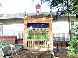 The memorial is in the form of a mausoleum, 2.76 metres (9 ft 1 in) long, 1.76 metres (5 ft 9 in) wide and 3 metres (9.8 ft) high. It is constructed of stone and plaster.[2]
