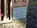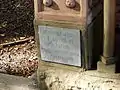 Four corner columns support a stepped roof which is surmounted by a miniature mausoleum containing an urn with wreath and flame in the form of a lamp of remembrance. The corner finials are in the form of classical urns and festoons.[2]