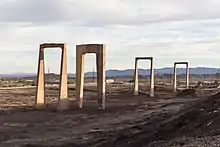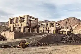 Production proceeded in Los Angeles, where Hawthorne Plaza Shopping Center functioned as the interior set of an icebreaker and a shipping container.[67] The Victorville Airport was disguised as Oslo, with more than ninety extras involved.[19] Instead of using miniatures and visual effects (VFX) for the plane crash sequence, Nolan determined that purchasing a Boeing 747 proved more cost-effective.[68] In October, filming moved to Eagle Mountain, where an abandoned town had been constructed and hundreds were clothed in military camouflage uniforms.[9] Over thirty buildings were prefabricated in Los Angeles and shipped to the site. Four Boeing CH-47 Chinooks were loaned out for four days. Outside shots of a tunnel were done in the desert, while the cavernous insides of the Hypocenter were fashioned on Warner Soundstage 16, their largest, with 32,130 square feet.[69] Tenet wrapped on November 12, after 96 days of shooting.[70]