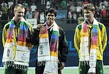 XIX Commonwealth Games-2010 Delhi Tennis (Men’s Double) Paul Hanley and Peter Luczak of Australia (Gold), Ross Hutchins and Ken Skupski of England (Silver) and Mahesh Bhupati and Leander Paes of India (Bronze)